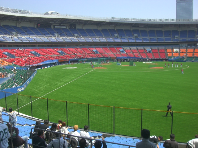 ←新しい人工芝。バックネット裏の座席も新しくなってるね。