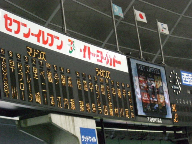 4回に相手の四球からもらったチャンスで里崎がチーム初ヒットとなる