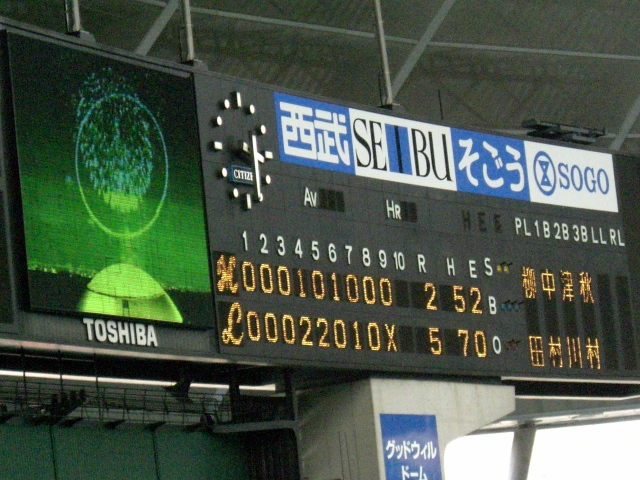 5回にも1死から四球を出すと2死後に高木浩、中島に連続2ベースを打たれ