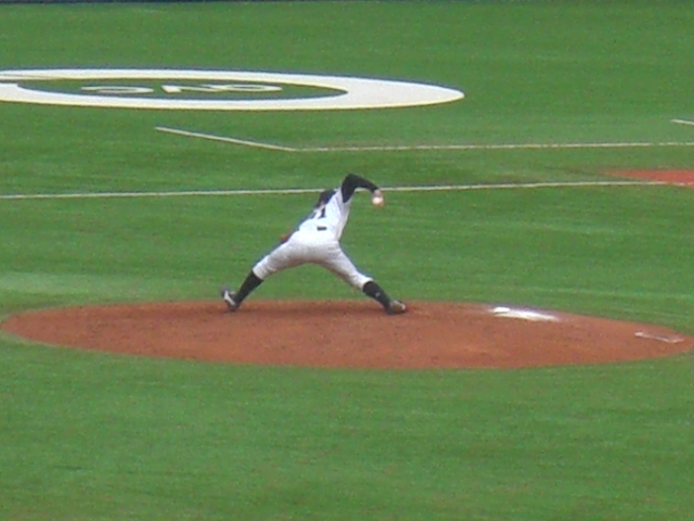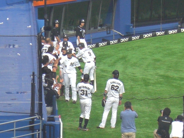 的場も好リード、今季初ヒットおめでとう。ただの外野フライなので観衆をもりあげられるのは的場のなせる業か。