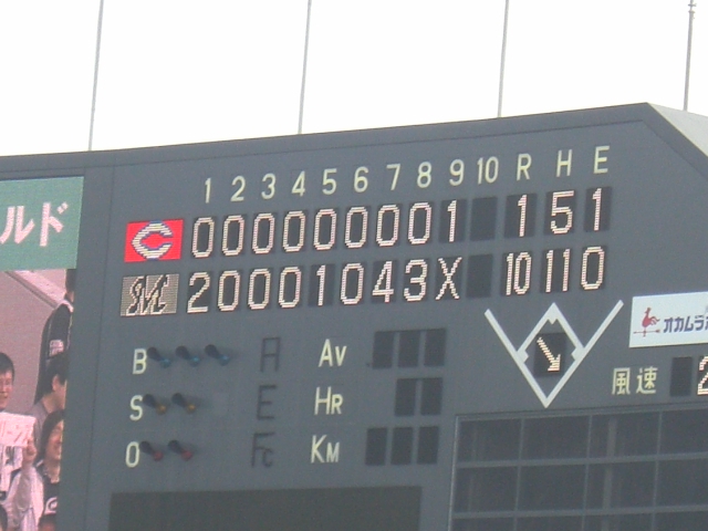 大活躍だった大松選手の新庄ばりの「明日も必ず勝ちます!」発言に不安を感じつつも交流戦ホーム初勝利となった。