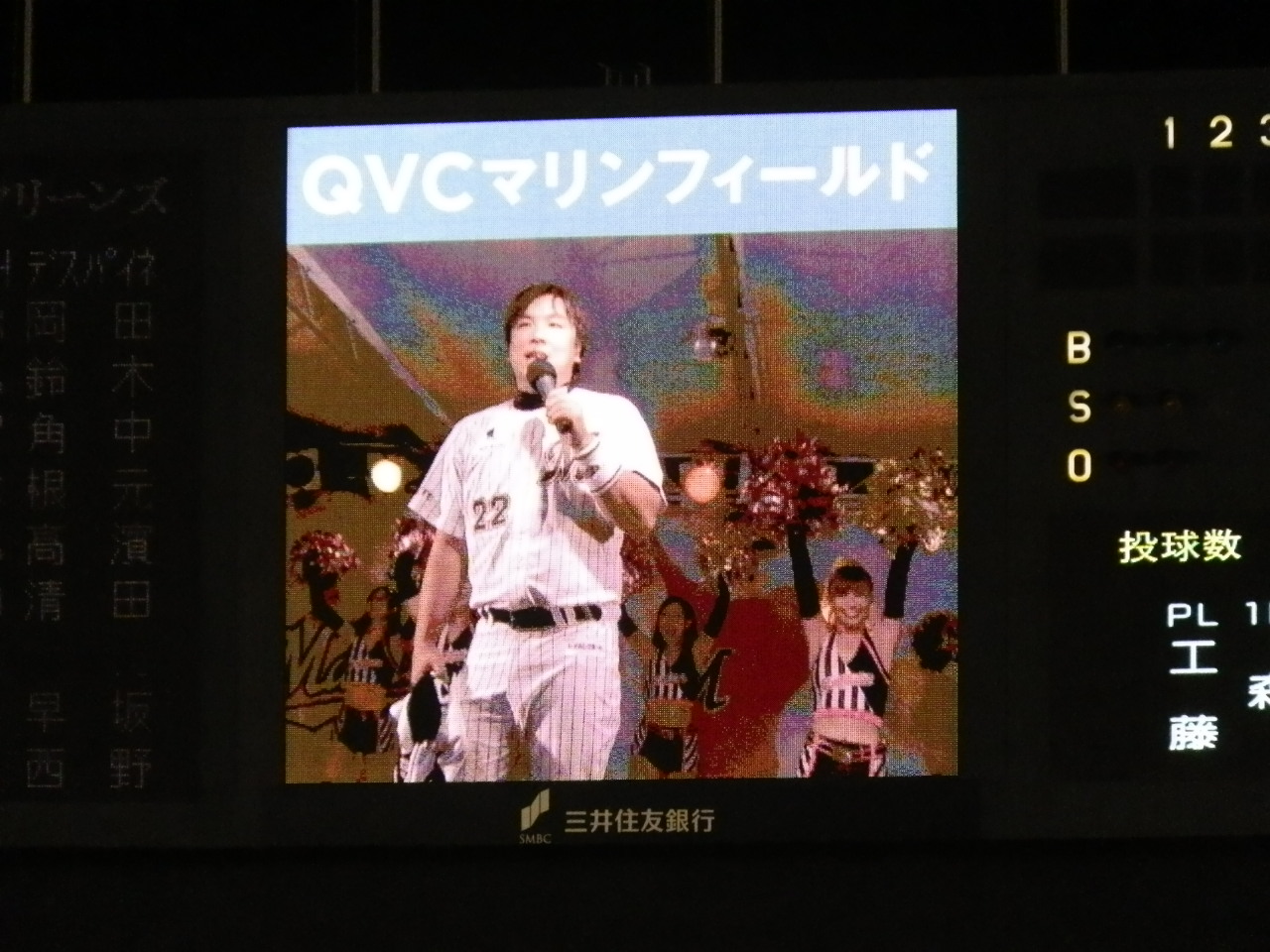 その心配を全く感じないピッチングで試合終了。里崎の引退試合に花を添える勝利であんなもんがやっとマリン初勝利となった。