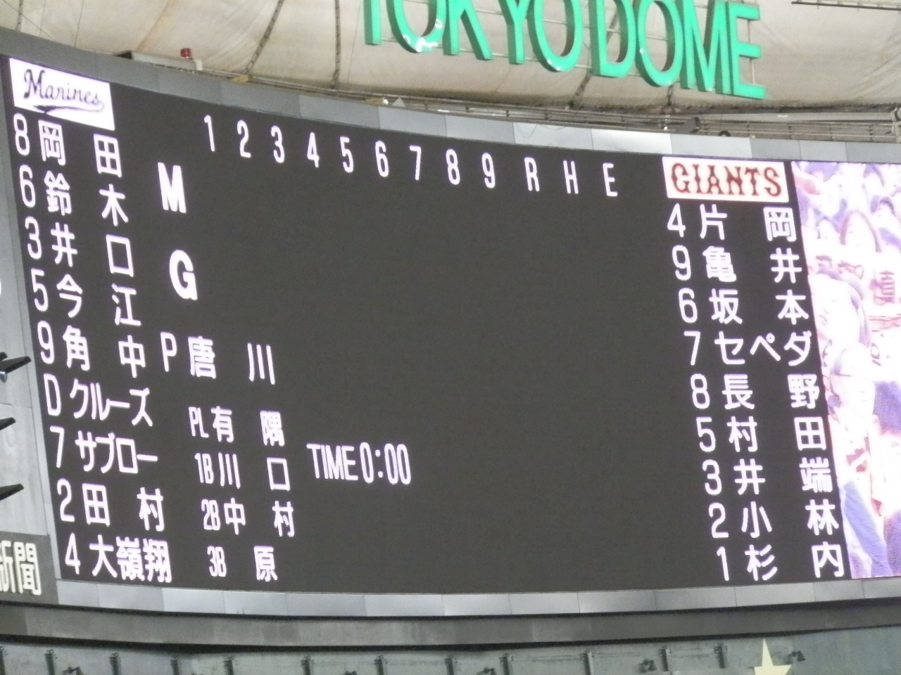 ←オーダーはこんな感じ。セリーグのジャイアンツはDHなし。