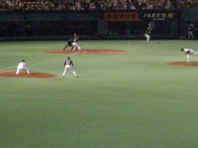 脇谷は一気に3塁へ。一気に同点のピンチ。