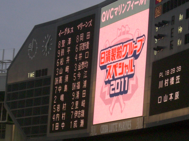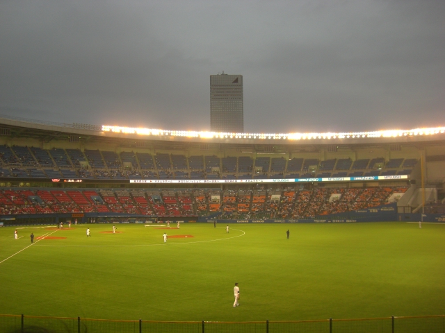 雨で3試合を流してようやく今年初めてナイターが行われたQVCマリンフィールド。
