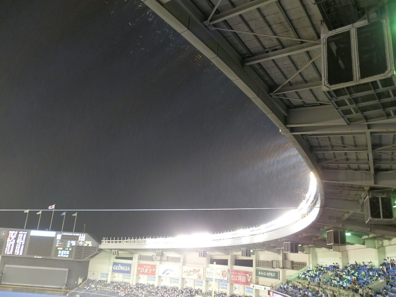 ←1回裏の攻撃が始まる前に大雨が降りました。