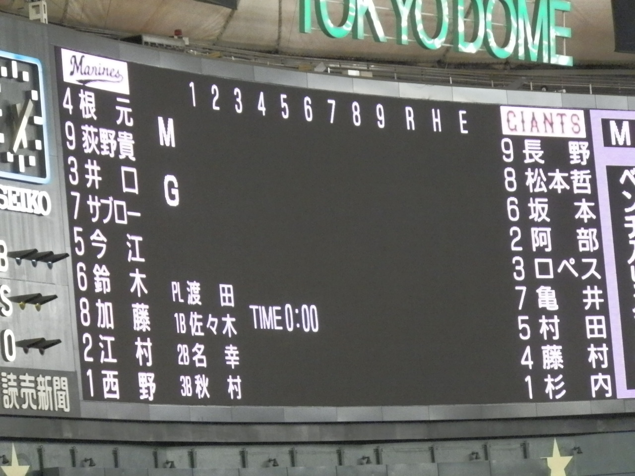 後続が続かず先制点を奪えずにいると、すぐ裏にマリーンズ先発の西野が2死から坂本に四球を与えると、
