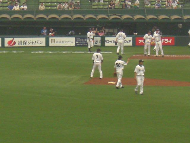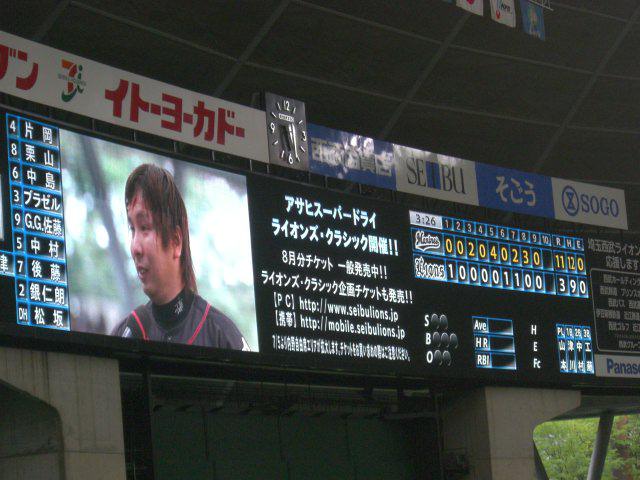 続くG・G・佐藤には詰まりながらライト前に運ばれ、サブローのやる気の無い守備もあり2ベースとなってしまう。