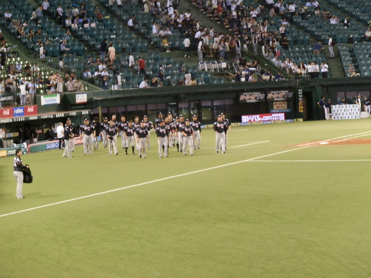 西武ドーム最終戦なのでダラダラとスタンドのファンにあいさつに来る選手一同。