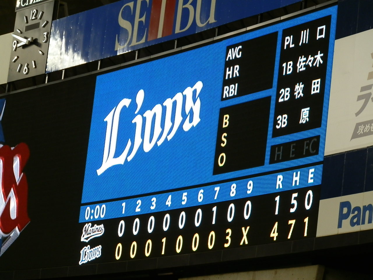 久々マリンに戻りますが負け試合ですね。大嶺が頑張っても打線がしょぼすぎて則本にねじ伏せられて終了ですわ( ´Д`)