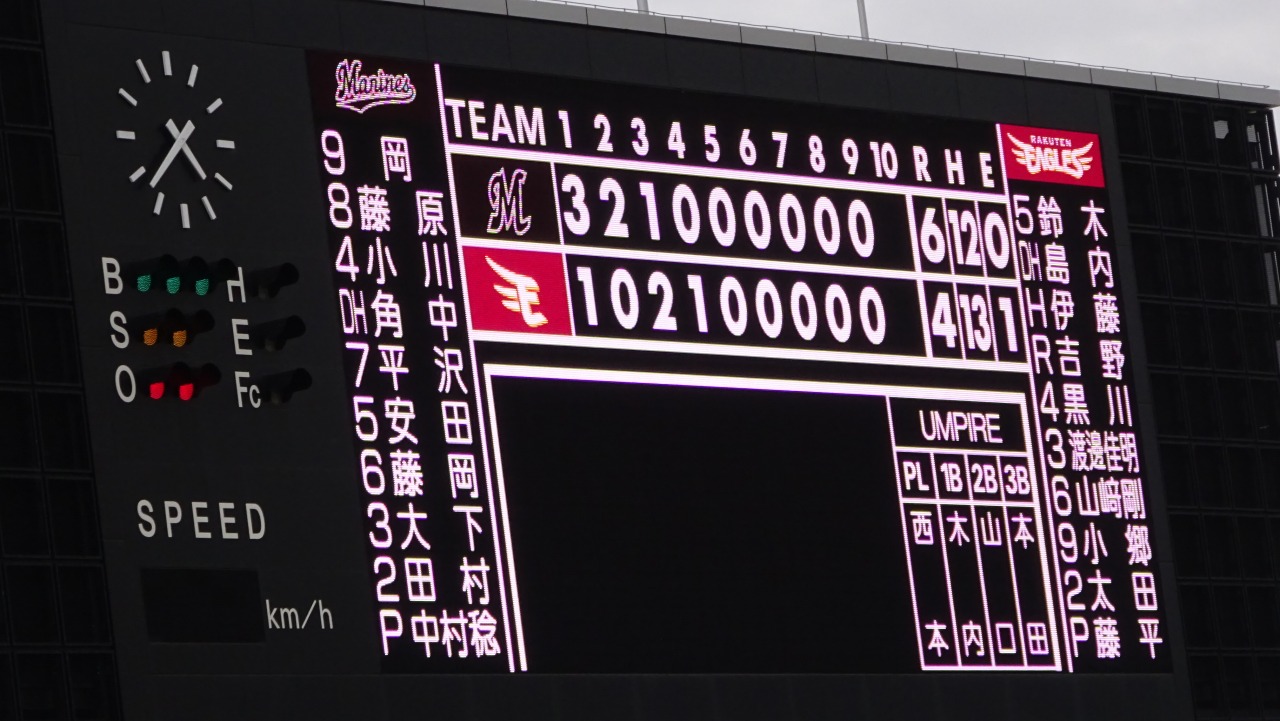 楽天の帽子かぶってロッテのメガホン持ってる子供が何人かいてどっちのファンだろうって考えてしまいました