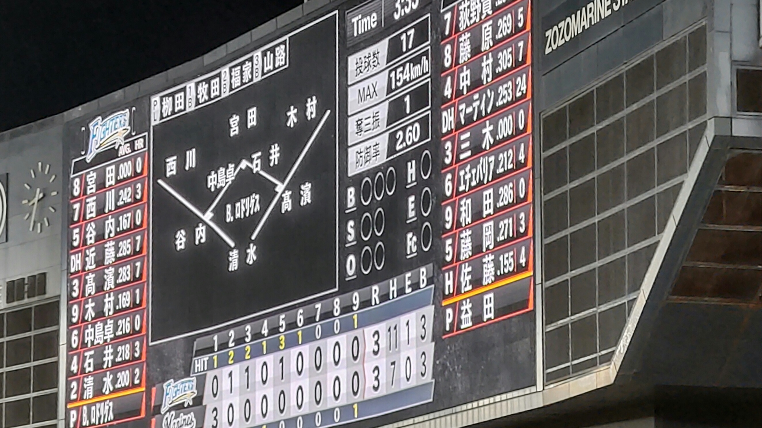 本日のロッテ戦