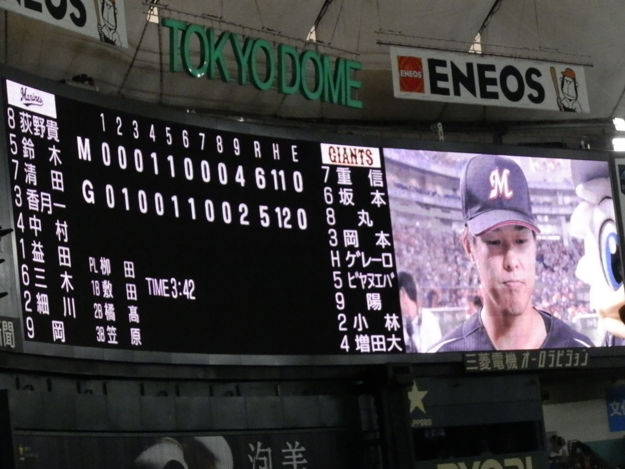 本日のロッテ戦。ドームで見てきました。