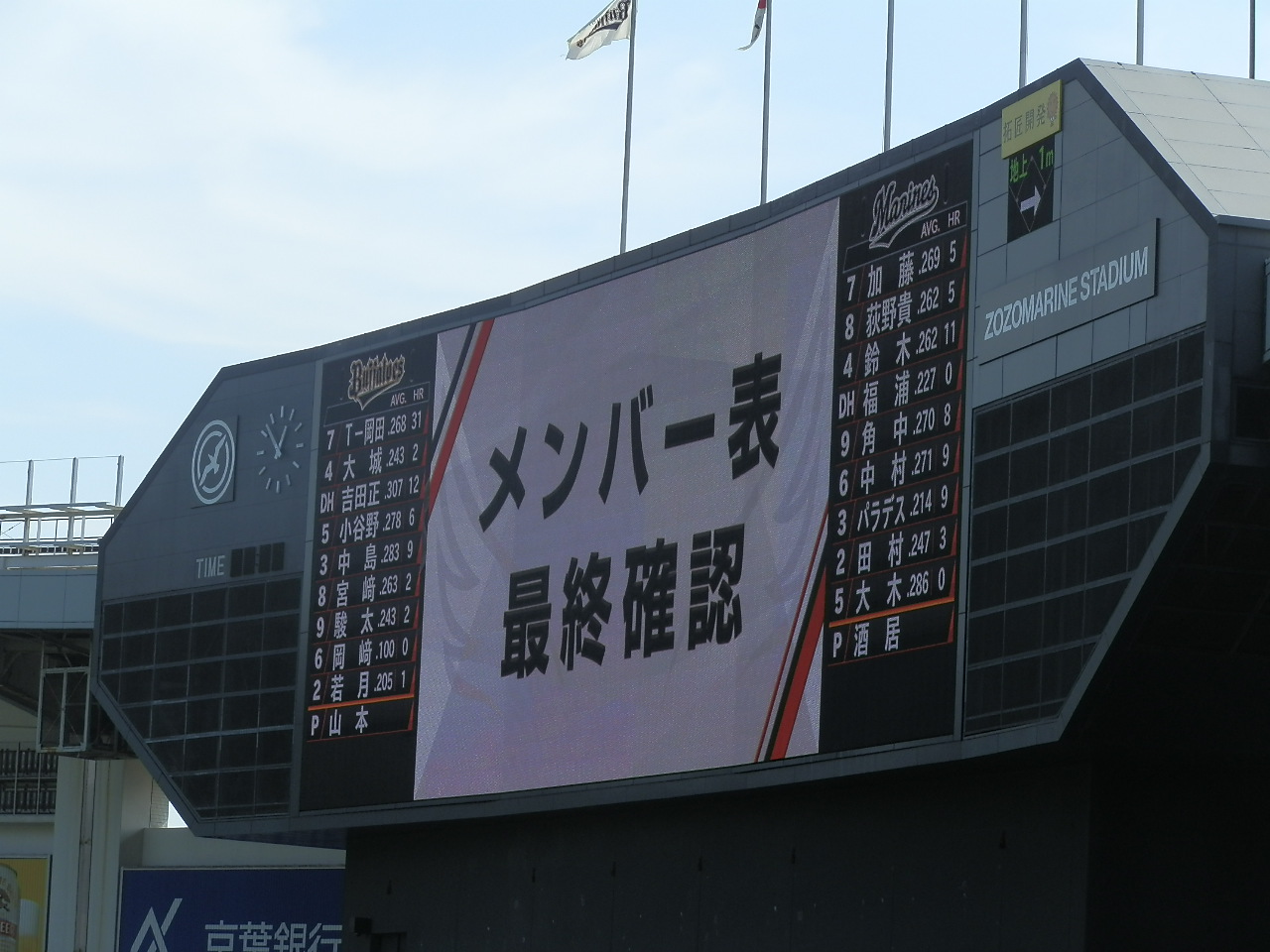 本日のロッテ戦